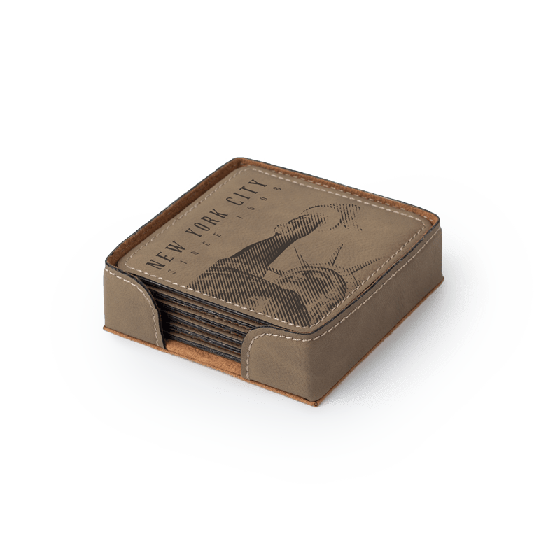 Customize your space with these square coasters featuring your own laser-engraved logo or image. A beautiful accessory for the desk, office, conference room, or home, their classic design complements any setting. This high-quality piece keeps drinks in their place and is sure to impress—making it a perfect gift for any personal or professional occasion.